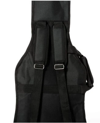 Gig bag for 4/4 classic guitar. It is made of rip-proof ”Oxford cloth 600D” with cloth outer border. Gig bag is equipped by velcro reinforced easy-to-open handle, adjustable double strap, large frontal pocket and strong zippers stitched with anti-rip nylon. It is made in black color.