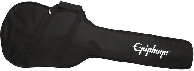 Soft gig bag that is compatible with all Epiphone standard-shaped solid-body electric guitar models and is made of durable, tear-resistant and waterproof nylon material with plush interior. It features ergonomic reinforced carrying handles, fully-padded, adjustable backpack straps and a front pocket for extra storage. Black colour design.