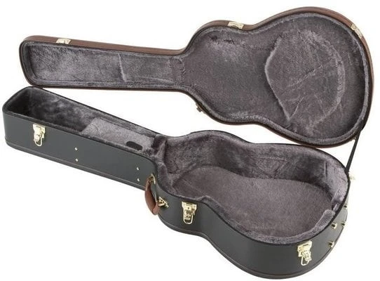 Hard-shell wood case for acoustic guitars with standard dreadnought body shape that is covered in tough Tolex material and provides maximum protection. It features padded plush interior lining, heavy-duty carrying handle and an accessory compartment. Black colour with golden Epiphone logo.
