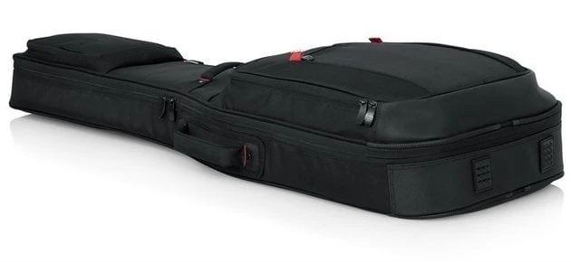 Electric Acoustic guitar bag with micro fleece interior and removable backpack straps. The bag is multi adjustable and features ultra-thick padded sidewalls, protective rain cover, body block internal shock absorber, tablet pocket, internal cable managment and sheet music pocket.