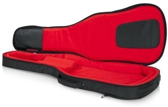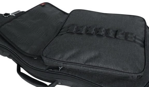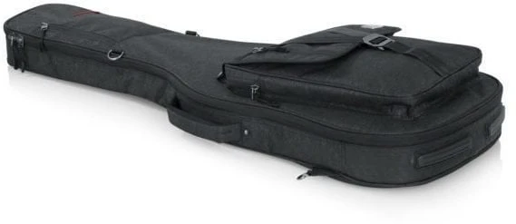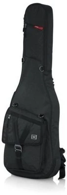 Transit Series Electric Guitar Gig Bag with Charcoal Black Exterior. Transit Series Gig Bag Designed to Fit Acoustic Guitars. Weather Resistant Blended Fabric Exterior in Charcoal Black. Thick Rubber Tread on Bottom of the Bag Prevents Wear and Protects from Small Puddles to Spilled Drinks. 20 mm Thick Foam Padding Covered with Plush Micro-Fleece Lining. Rigid Interior Construction within the Frame of the Bag for Case-Like Protection. Adjustable, Removable Three-Point Interior Padding System Protects the Headstock, Neck and Bot-tom/Endpin. Large Front Zippered Pocket with Flap, Features G-Hook Buckle and Seatbelt Loops for Multiple Connection Points Allowing You to Fill the Pocket to Capacity and Still Secure It. Small Pocket on Front Flap with Soft Lining for Electronics Provides Quick Access to Phone, Keys and Small Electronics. Molded, Padded, Contoured Handle for a Secure Yet Comfortable Grip. Padded, Removable, Color Matched Backpack Straps. Several D-Rings for Clipping Accessories. Color: Black.