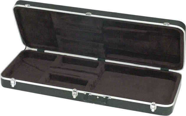 Electric guitar case, premium. American design, Heavy duty ABS-shell. Continuous aluminium profile, chrome plated locks with latches. Metal feet with shock-absorber support. Black plush padding. All metal parts riveted. Riveted logo-plate.