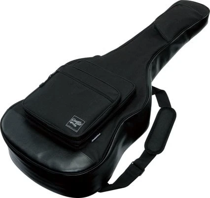 Gig bag for 4/4 classical guitar from Ibanez. The ultra-protective ICB540 acoustic guitar gig bags have synthetic leather covering the durable sections at the bottom and the sides of the shock-absorbing Ibanez POWERPAD cushions. The bags’ smart zipper design allows you to remove your acoustic guitar quickly and easily. Extra pockets for storage and backpack straps make it perfect for the gigging or learning guitarist.
