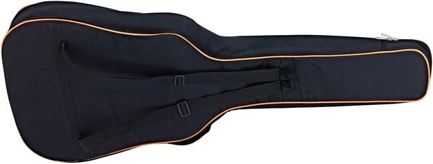 Professional guitar bag. Made from sturdy material with a 10 mm soft inside padding and heavx duty zippers. Includes a big accessory compartment (perfect size for music books). Two ajdustable shoulder straps. For 1/2 sized guitars. Colour: Black/Orange.