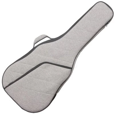 Durable and stylish padded Pasadena case for dreadnought acoustic guitars in elegant gray color.The case includes a padded handle, back straps and a front zip pocket.The black interior hides a support for the neck of the instrument with a strap to hold it.