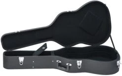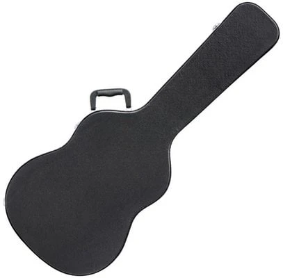 Sturdy carrying case for classical guitar with traditional body shape, made of durable material. Black colour.