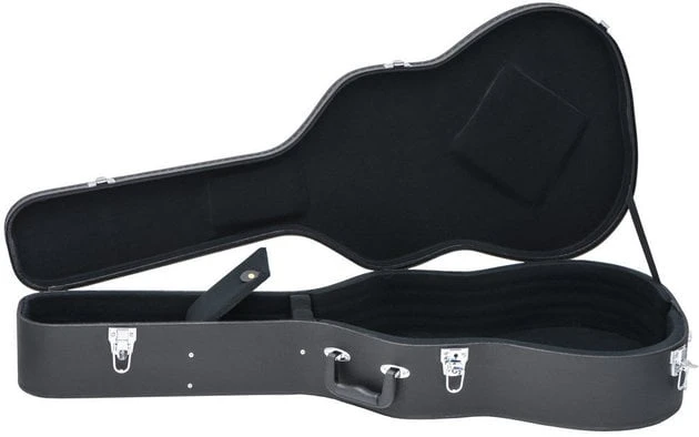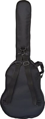 Sturdy carrying case for acoustic guitar with standard dreadnought body shape, made of durable material. Black colour.