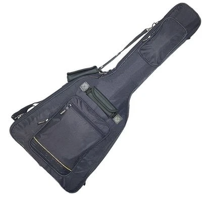 Rockbag for semi-acoustic electric guitar from Deluxe Plus series. It is made of 600 Denier Polyester, has a cushion of 20 mm solid laminated materials, 5 mm polypropylene padding and 2 mm plastic sheeting. It has a velvet inside surface that provides great instrument protection. The neck area is reinforced, extra padded and has a compartment for small items. The bag is waterproof, has a pocket for notes, handles on the side and the front and two removable straps. Color: Black. Inner dimensions: 409 x 108 x 74 mm.