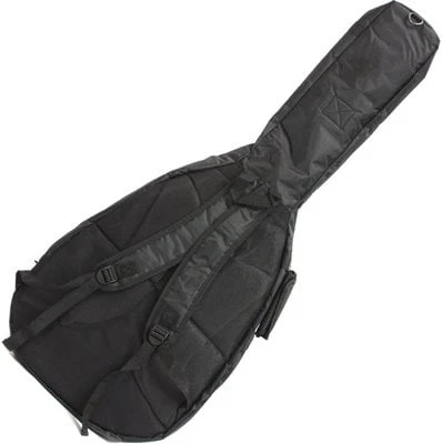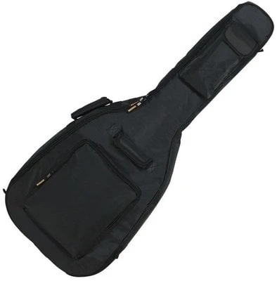 Soft gig bag for acoustic guitar with dreadnought or jumbo shape, also suitable for a 12-string model, from Student series made from waterproof and durable black nylon durable material with 10 mm foam padding that provides great protection against mechanical damage and external influences. Bag is equipped with external cushioning of the back side for higher comfort and sweat absorption, dual zips, two ergonomic handles, two cushioned shoulder straps and two side pockets for accessories. Black colour.