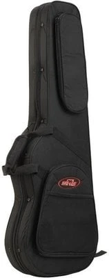Universal Shaped Electric Guitar Soft Case. Features heavy duty double pull zipper, molded EPS interior with plush lining, durable 600 Denier exterior layered with rigid foam, convenient exterior accessory pouch, carrying handle and padded backpack straps. Dimensions of instrument: 99,7 x 32,4 cm. In a black finish.