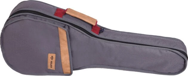 The Veles-X TUBG Tenor Ukulele Bag, designed by a fashion clothing designer, is stylish and made to keep your guitar safe on the go. The cover is made of polyester with a waterproof coating. The protective function is provided by 10 mm of foam padding, which is pleasant to touch, abrasion resistant, and also a very good thermal insulator. The YKK branded zipper that is used in the production is waterproof, reversible and tested to withstand high loads. The case comes with a leatherette handle. Sheet music, spare strings or snack from your grandma can comfortably fit in the accessory compartment. The delicate design of the gray cover is perfectly complemented by burgundy details and leather elements.